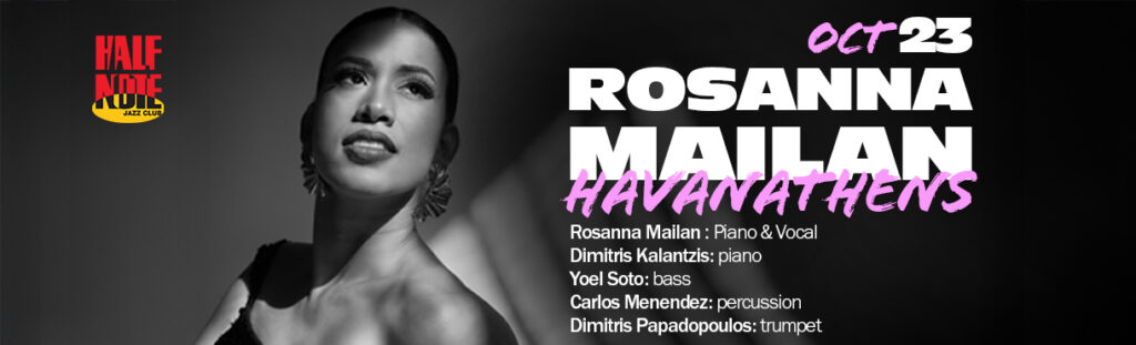Μετά την επιτυχημένη πρώτη της εμφάνιση στο Half Note, η Rosanna Mailan επιστρέφει στη σκηνή του ιστορικού jazz club την Πέμπτη 23 Οκτωβρίου, με το ολοκαίνουριο project της “Havanathens”.